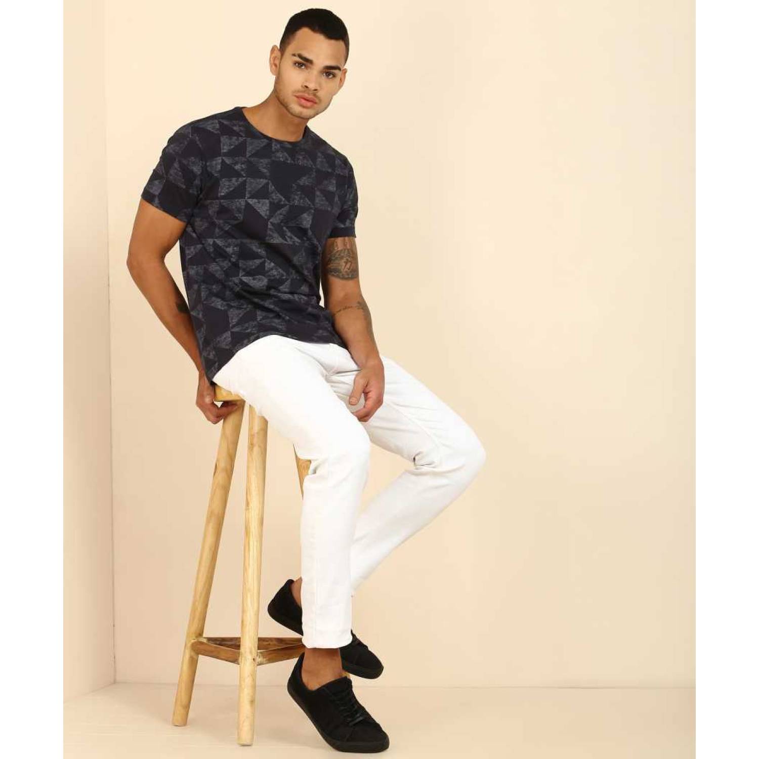 Printed Men Round or Crew Blue T-Shirt