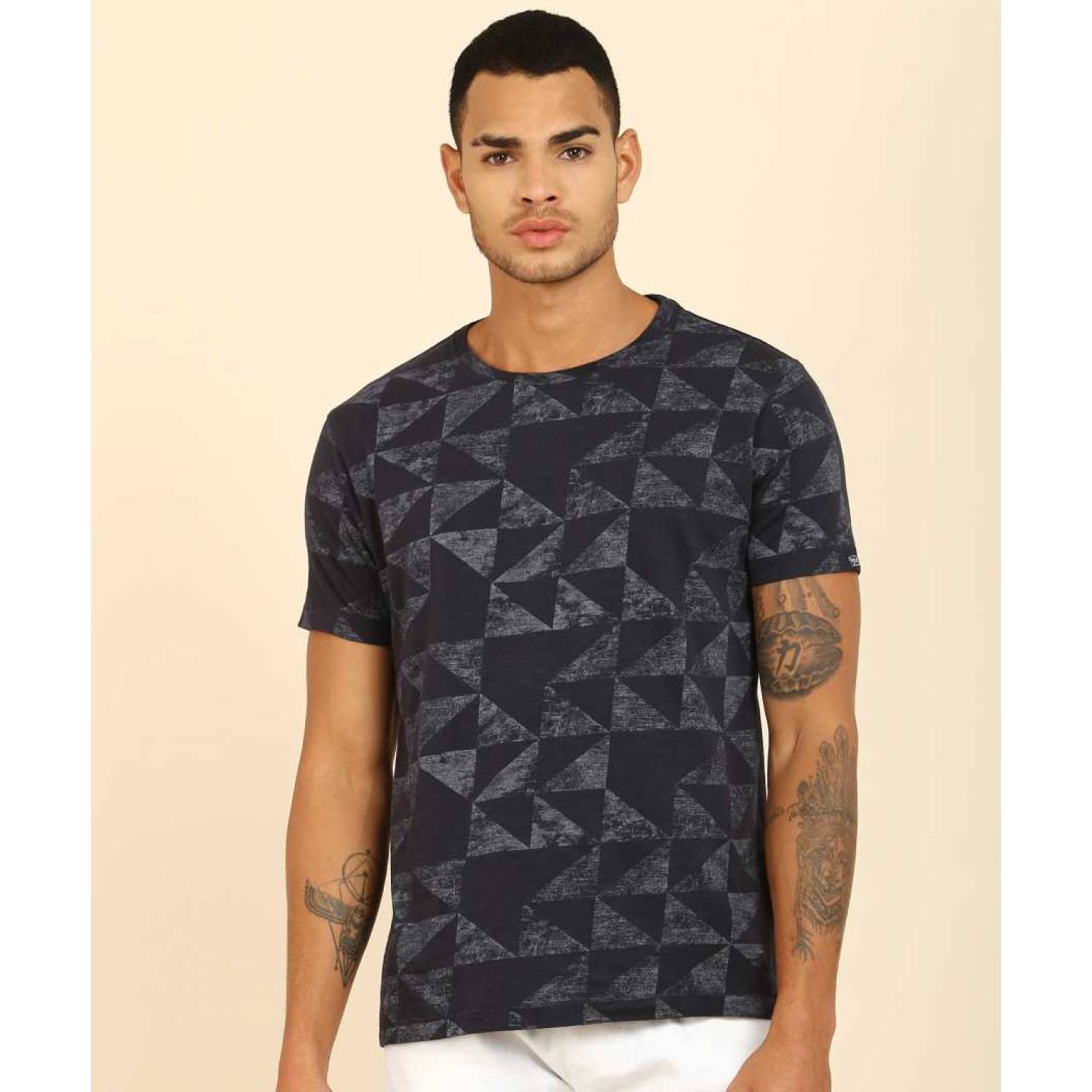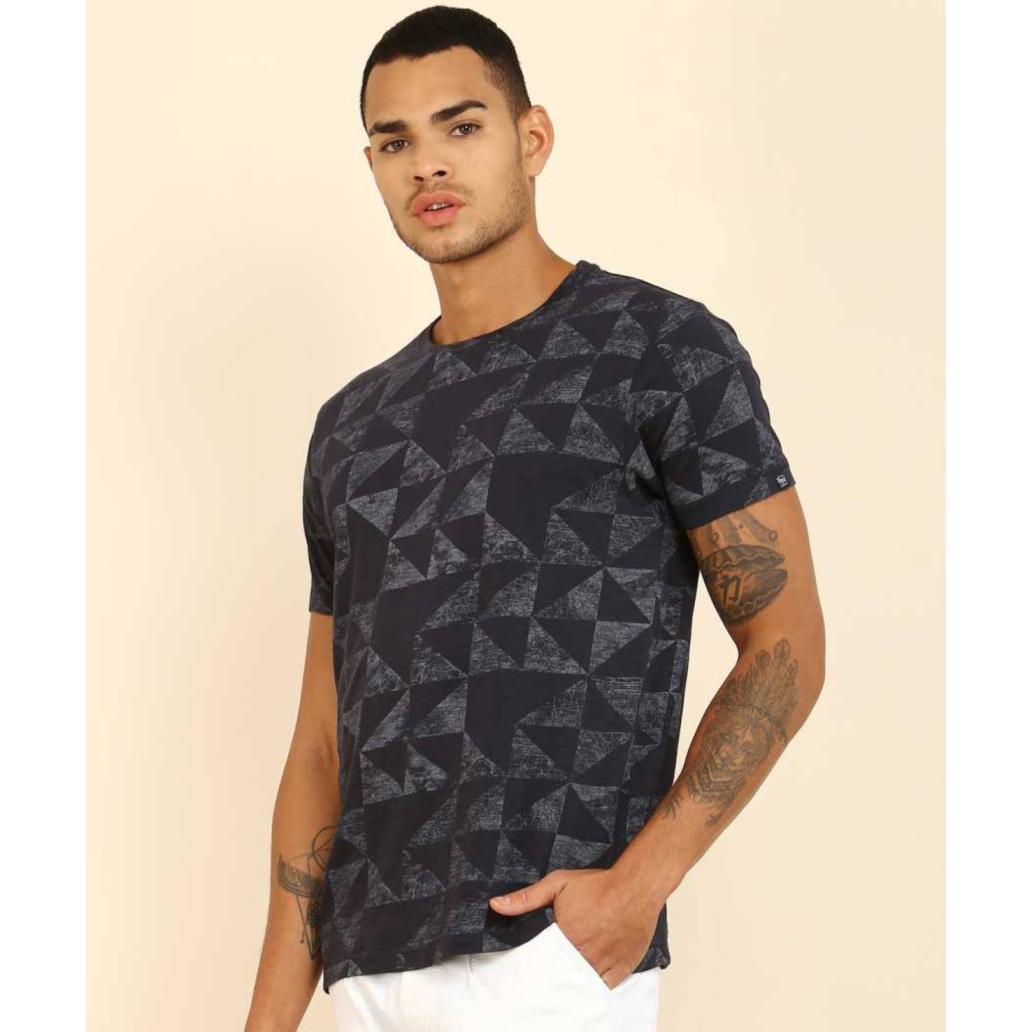 Printed Men Round or Crew Blue T-Shirt